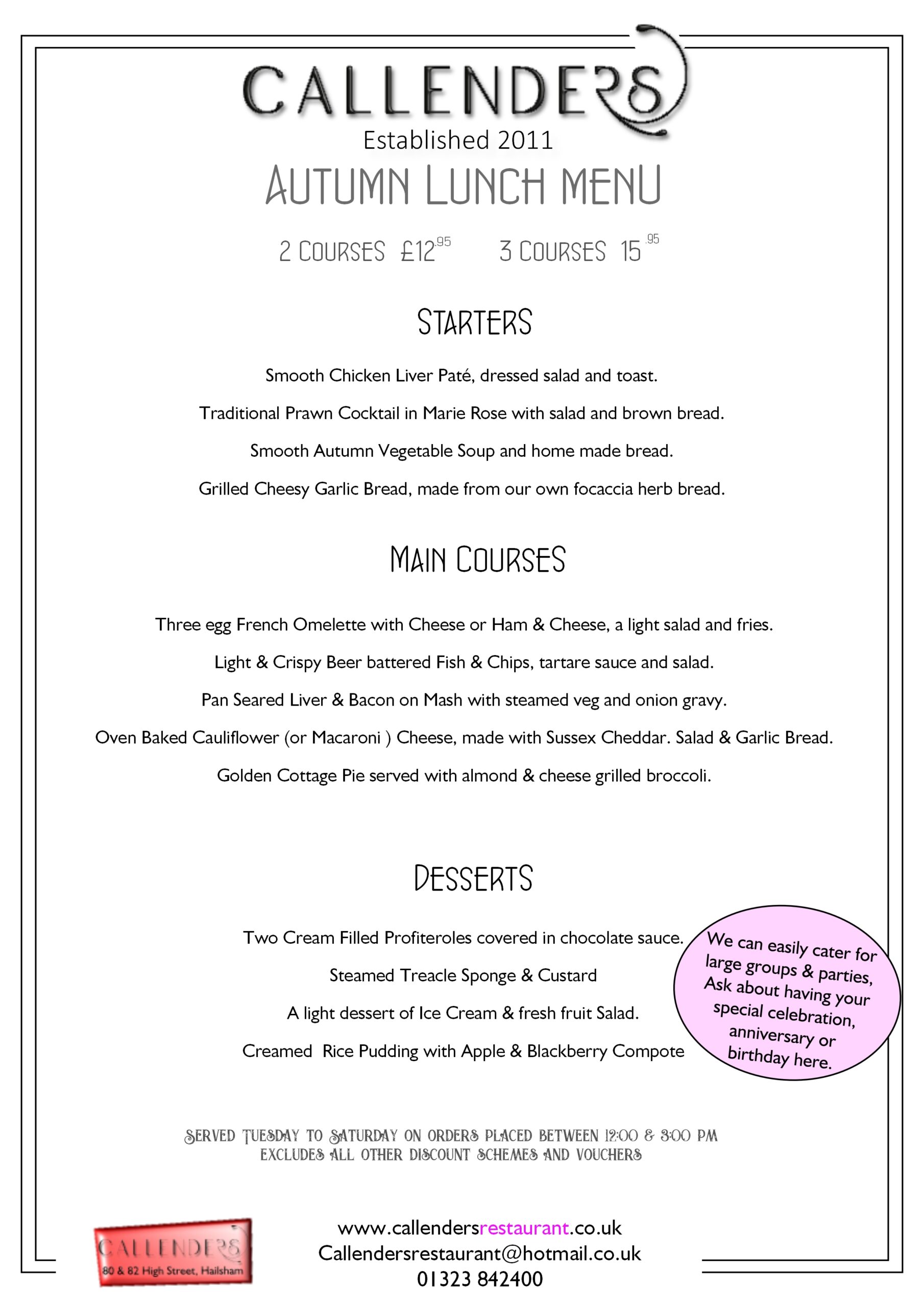 Our full menu is always available, but look out for these extra value offers.